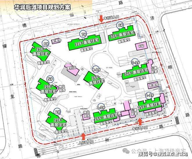 项目概况:7栋百米高层(28-32层)、1栋25层83米高住宅和1栋26层86米高住宅组成,整体容积率我觉得是比较大的,这也是滨江住宅的常态。建筑首层均采用架空设计,和陆家嘴太古源相似,这也是目前滨江住宅的常态做法,既提升了空间通透性,又为居民提供了更多公共活动空间。
